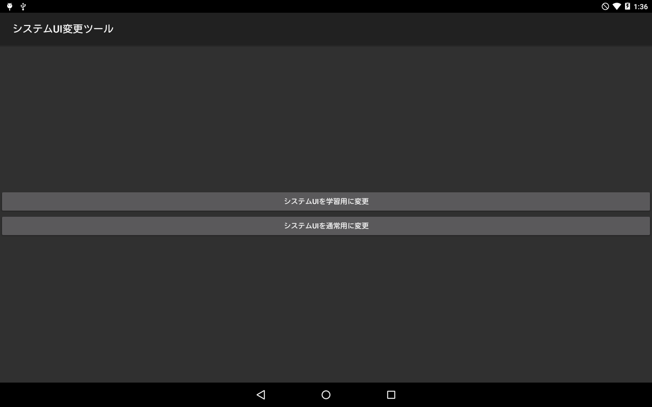 - デフォルト状態の機能(システムUIの変更、ナビゲーションバーの非表示)は全て"android.permission.WRITE_SETTINGS"を使用してシステム設定を変更しています。