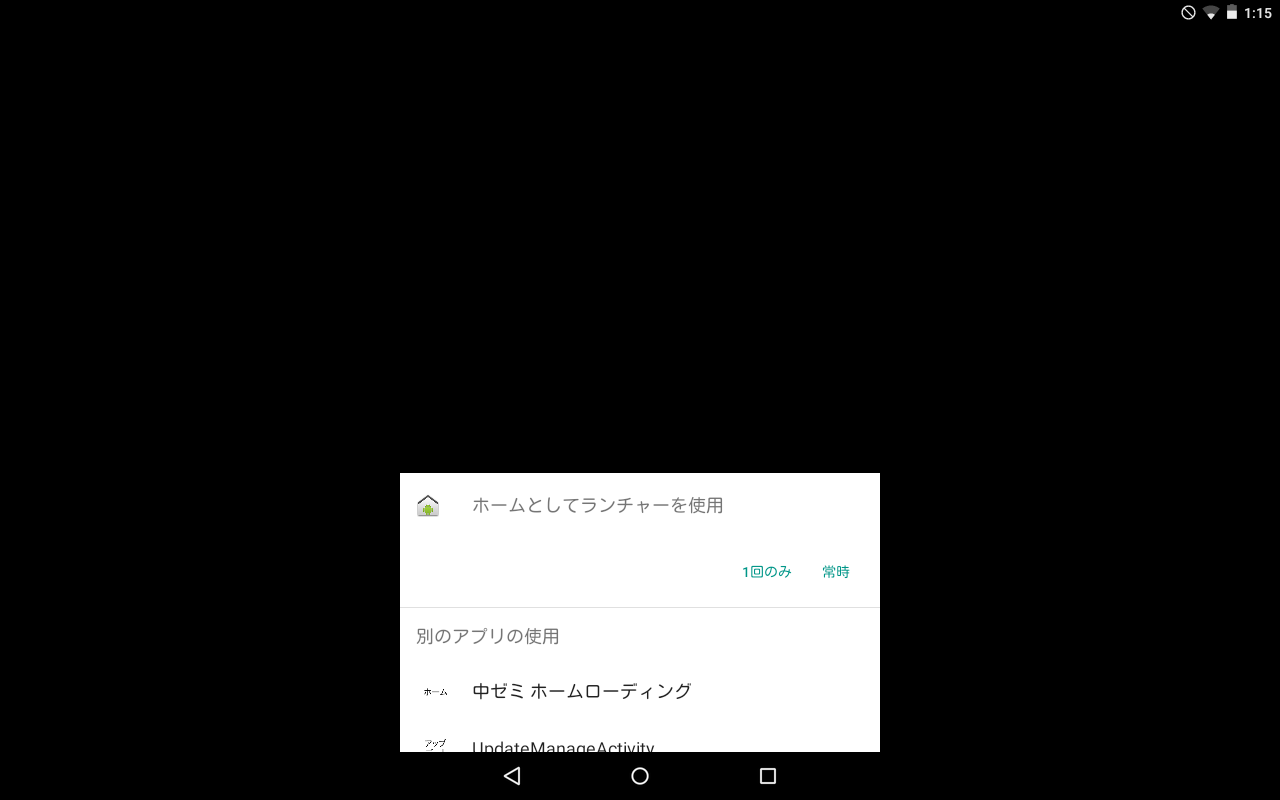押すと、再起動がかかります。起動したら、ホームを選ぶ画面が表示されます。画面の下ら辺にポップアップ表示されるので、ホームローディングを選びます。