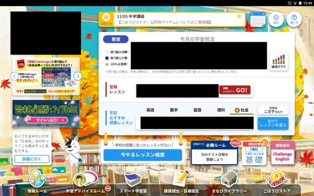 執筆者は小学講座を受講していないため、小学講座での方法は不明です。基本的には同じように進めてください。一部の画像には中学講座のみのアプリが含まれています。その際は無視してください。