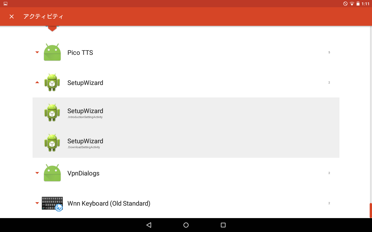 設定→タブレット情報→法的情報→システムのWebViewライセンス→homepageと書かれた文字を押す。